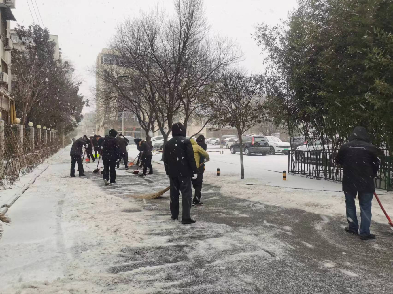 2月20日下午,鄭州迎來了龍年的第一場(chǎng)大雪。道路積雪結(jié)冰給出行帶來極大安全隱患。建材院迅速組織黨員職工開展義務(wù)掃雪活動(dòng)。