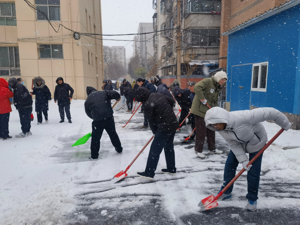 在公司黨委書記、董事長(zhǎng)尹青亞的帶領(lǐng)下,60余名黨員職工紛紛拿起鐵鍬、掃帚等勞動(dòng)工具,開始對(duì)公司周邊道路及辦公區(qū)、家屬區(qū)主要道路上的積雪和堅(jiān)冰進(jìn)行清理。漫天大雪混雜著冰粒拍在職工的臉上、背上、手上,卻絲毫沒有撼動(dòng)大家勞動(dòng)的熱情和腳步,凜冽寒風(fēng)中三五人一組分梯次進(jìn)行掃雪除冰作業(yè),鏟的鏟、推的推、掃的掃,大家團(tuán)結(jié)協(xié)作、干勁十足,忙碌的身影在皚皚白雪中成了一道道靚麗的風(fēng)景線。